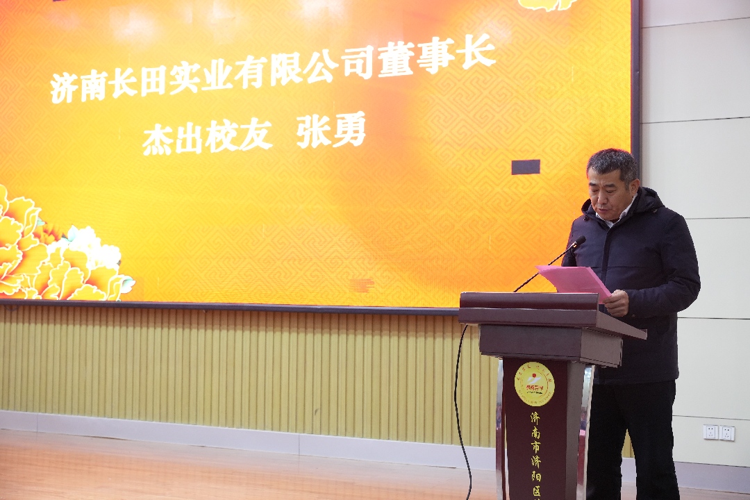 張總作為作為捐資代表講話,他講到,回到母校,就像回到了四十年前的中學時光,難忘孫秉鑫、安光茂兩位老校長的諄諄教導,感念趙而水、張端奎等老師的悉心培養(yǎng)。更讓他動容的是,濟陽一中承載著家族三代人的情感與寄托,父親曾在此執(zhí)教,兄弟三人追隨父親腳步在此求學,女兒也曾踏入校園,續(xù)寫著與母校的深厚淵源。結(jié)合自身經(jīng)歷,他為學子們分享了三點成長感悟:一是扎實根基方能茁壯成長,中學時代是積累知識、錘煉品格、培養(yǎng)韌性的關(guān)鍵時期;二是懂得感恩方能行穩(wěn)致遠,常懷感恩之心才能明晰方向、凝聚力量;三是胸懷家國方能格局開闊,要將個人理想融入國家發(fā)展洪流。他勉勵同學們傳承母校“永不滿足、追求卓越”的校訓精神,讓青春在奮斗中綻放光芒。